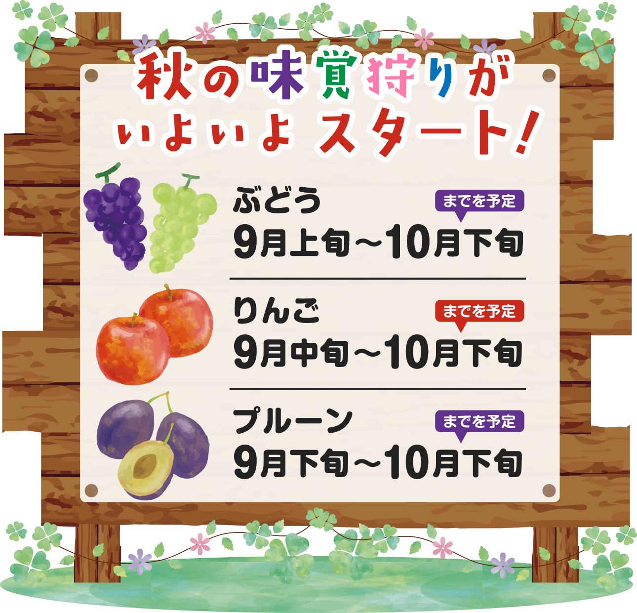 お子さまが走り回れるくらい広い園内は、シーズン中は果実の甘い香りで一杯。ご家族やお友達、カップルのデートなど、お年寄りからお子さままで楽しめますので、一生の想いでづくりに最適です。