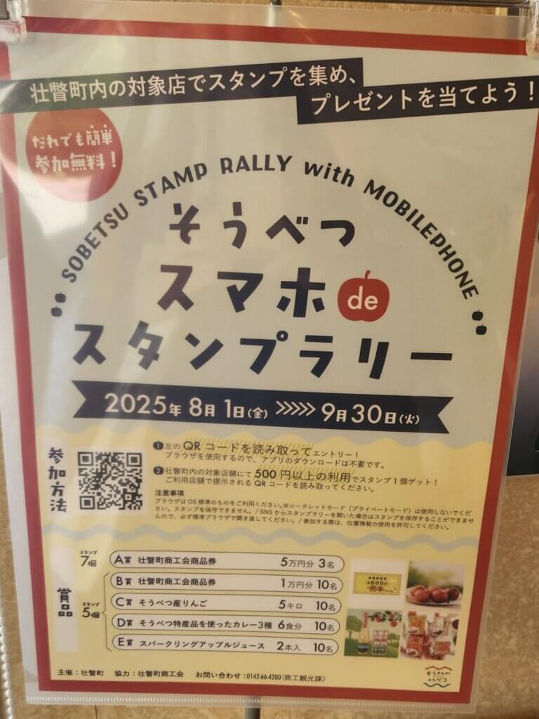 ほりぐち果樹園は、そうべつスタンプラリーに参加させて頂いております。9月30日までやっていますので、ぜひ参加してみて下さい!売店のレジの横で簡単に登録可能です。